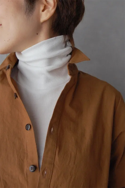 締め付けすぎなく程よいフィット感のタートルは、シャツやニットの中に重ねて綺麗に着ることができます。