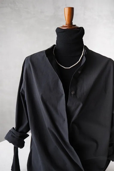 真冬にはウールのタートルの中に重ねると、風の侵入を防ぎ、より防寒性が高くなります。