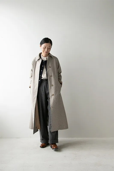 トラディショナルなガンクラブチェック柄が魅力の〈ステンカラーコート〉やぬくもりを感じるコットンフランネル素材の〈バンドカラーシャツ〉。