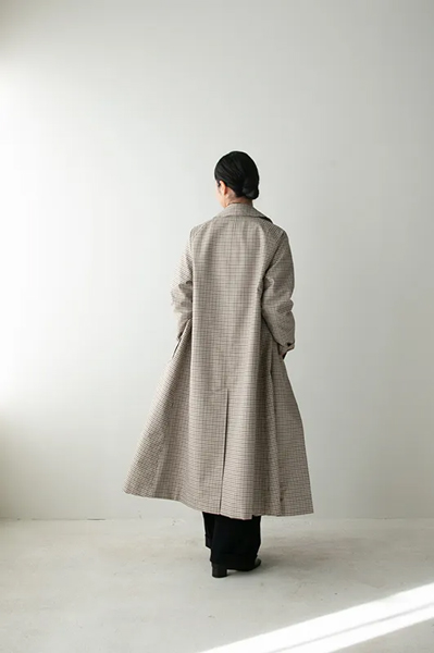 ガンクラブチェックがトラディショナルな印象の、ロング丈ステンカラーコート〈ルーヴル〉。