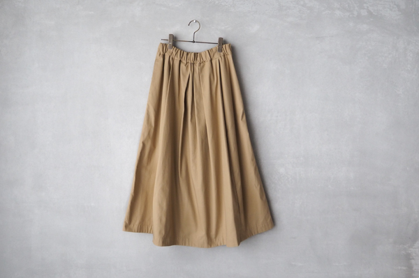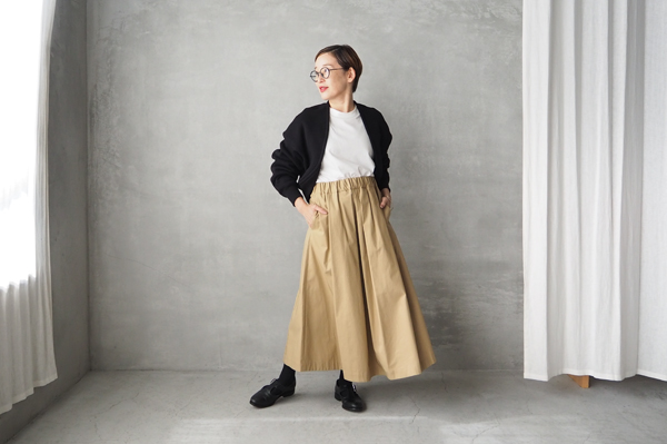 ロングシーズン活躍するチノ素材のランダムタックスカート。