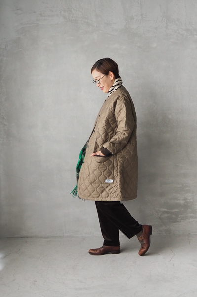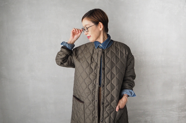 毎シーズン大人気の「ARMEN」”ヒートキルトシリーズ”より〈キルティングノーカラーコート〉をご紹介します。