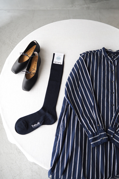 膝下まである長めのハイソックスは、足元をあたたかく包み込んでくれます。