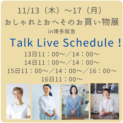 おしゃれとおへそのお買い物展in博多阪急 11/13(木) ~ 17(月) お買い物イベント出店のお知らせ