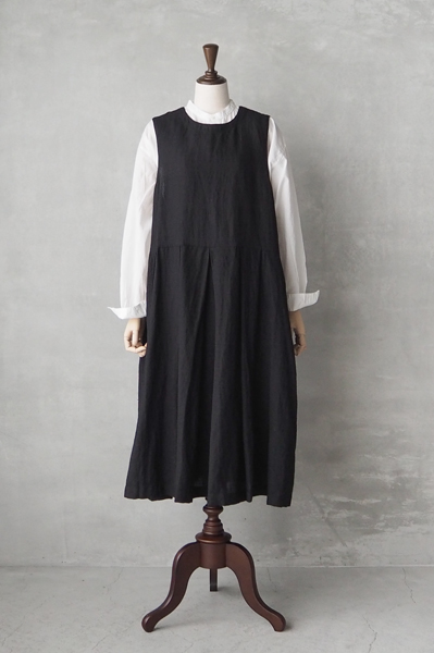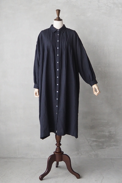 ウールリネン ピンタックワンピース〈WOOL/LINEN PLAIN REGULAR COLLAR DRESS WITH PINTUCK〉