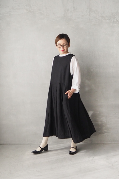 やさしい温もりとさらりとした風合いを併せ持つ、ウールリネン素材のジャンパースカート。