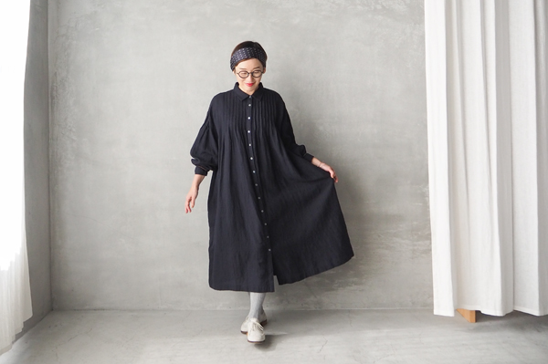 やさしい温もりとさらりとした風合いを併せ持つ、ウールリネン素材のピンタックワンピース。