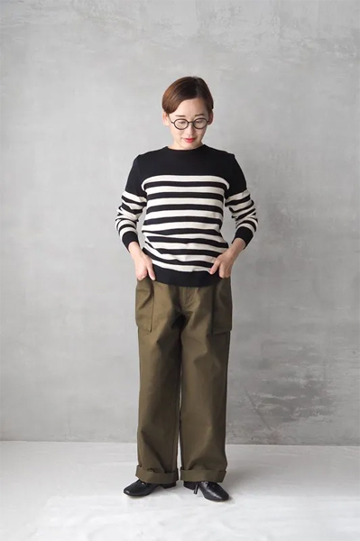 バランスのよいサイズ感で、程よいゆとりと伸縮性のある軽やかな着心地。