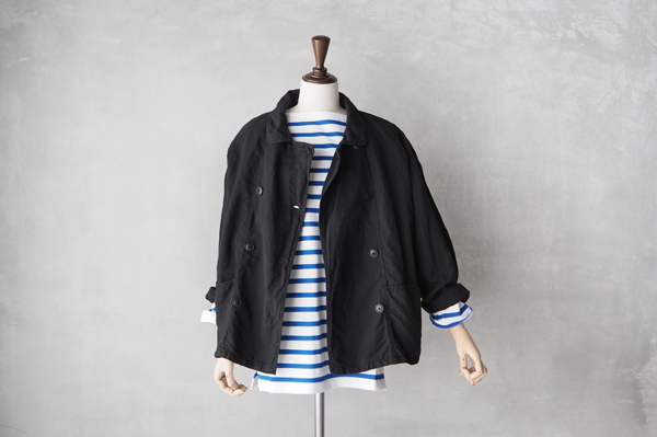 ワークウェアのディテールを取り入れつつ、襟元のラウンドカラーで無骨さを押さえた柔らかな印象が魅力の一枚です。