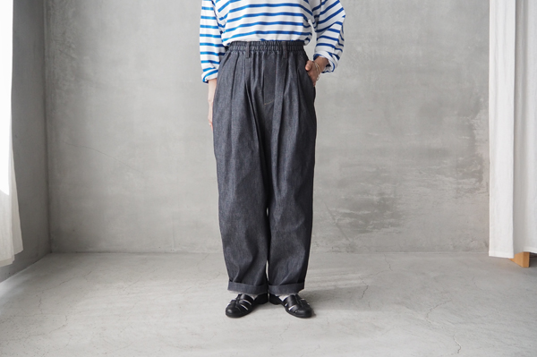 ウエストに入った2本のタックがポイントの、ライトデニム ツータックイージーパンツです。