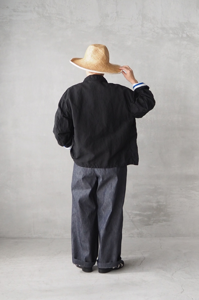 リネンコットン ダブルジャケット〈LINEN COTTON PLAIN OVERDYE ROUND COLLAR DOUBLE JACKET〉:ARMEN / ¥33,000 tax in online store