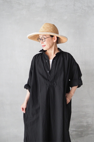 リネンコットン ワークギャザーワンピース〈LINEN COTTON PLAIN OVERDYE WORK GATHERED SHIRT DRESS〉:ARMEN / ¥35,200 tax in online store